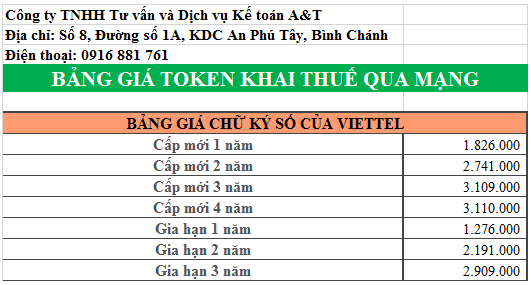 + Chữ ký số VIETTEL (click vào để xem chi tiết bảng giá)