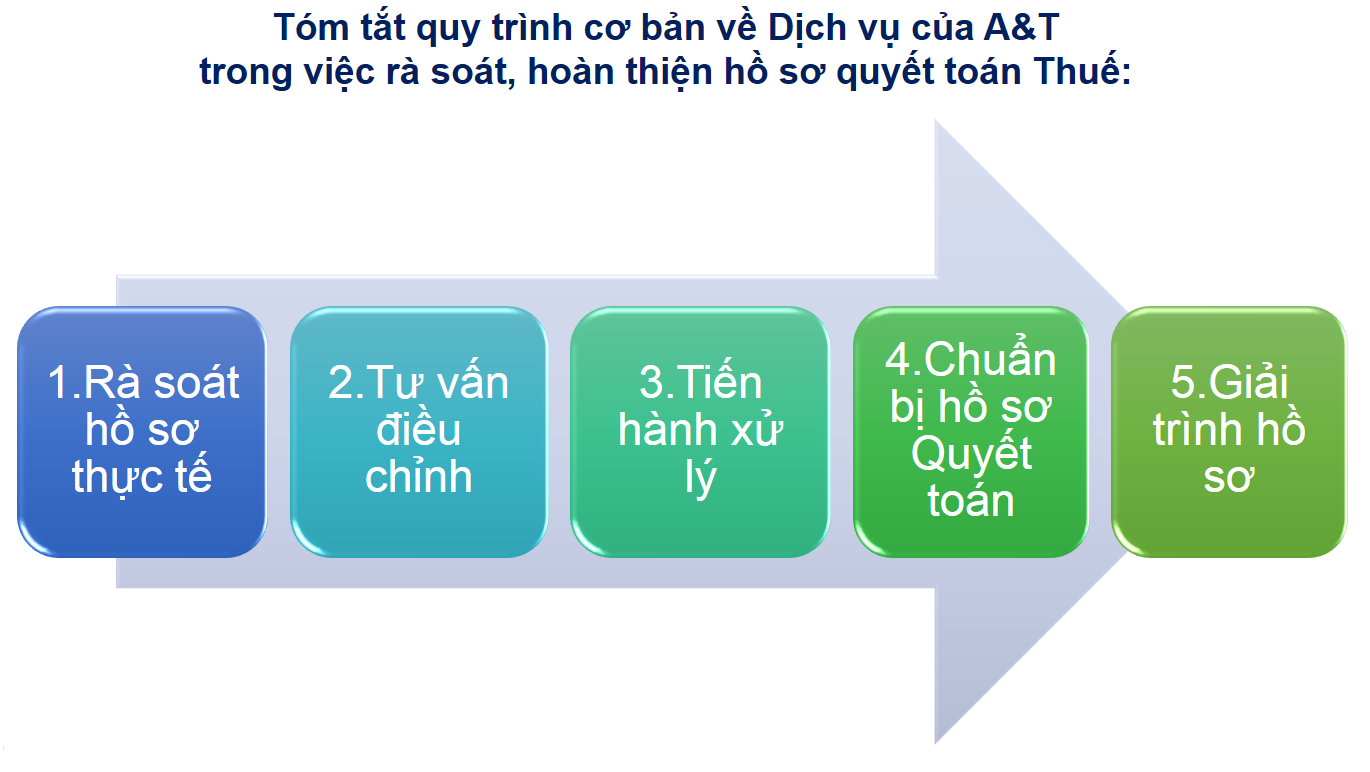 Ngoài các dịch vụ chuẩn bị, hoàn thiện hồ sơ cho việc quyết toán Thuế, công ty A&T còn thực hiện việc rà soát lại sổ sách kế toán cũng như rà soát tình hình kê khai, nộp thuế tại doanh nghiệp qua các năm, cùng với việc hỗ trợ tư vấn các giải pháp tối ưu nhằm giúp giảm thiểu rủi ro vi phạm cao nhất có thể cho đơn vị.